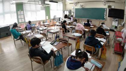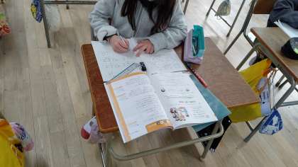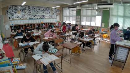 2時間目、3年生が算数の学習をしています。今まで学習した内容の復習問題をしています。