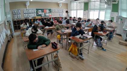 2時間目、4年生が国語の学習をしています。「漢字テスト」をしています。