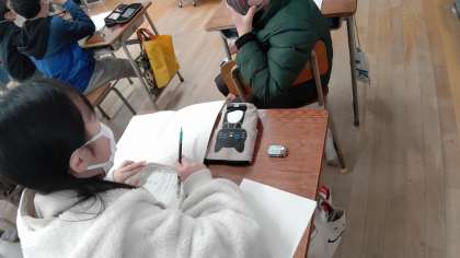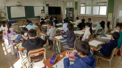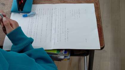 2時間目、4年生が「漢字テスト」のあと、先週に続いて、杉浦宏さんの「めだか」の読みとりをしています。