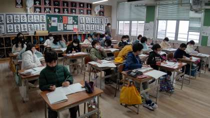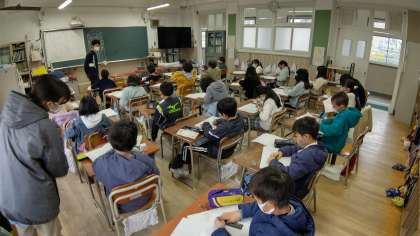 1時間目、4年生が先週に続いて、杉浦宏さんの「めだか」の読みとりをしています。