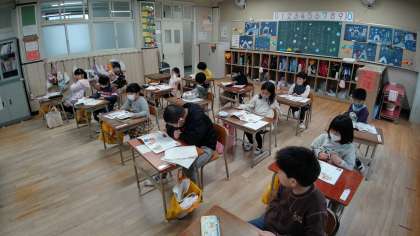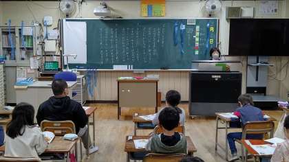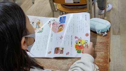 2時間目、1年生が音楽の学習をしています。明日がおひな祭りなので、「うれしい ひなまつり」を歌っています。歌詞は4番まであります。
