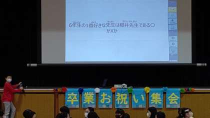 6年生のアンケートを、 クイズにして、みんなで楽しみました。