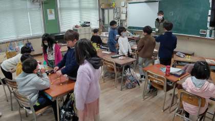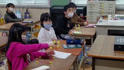1時間目、2年生が算数の学習をしています。「立体模型」を作っています。
