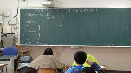 5時間目、5年生が算数の学習をしています。「円柱の展開図」を作っています。