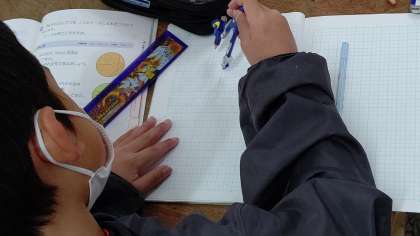 2時間目、3年生が算数の学習をしています。教科書の「確かめ問題」をしています。