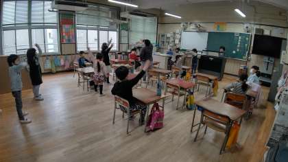 今日は、朝の歌で「パプリカ」を振りつけして歌っています。