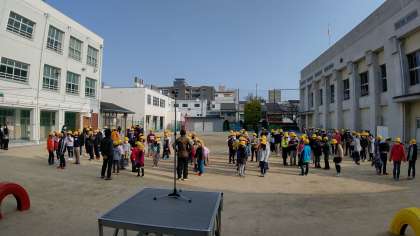今日は、運動場で全校朝会がありました。校長先生のお話のあと、環境委員会から表彰、桝田先生のお話がありました。全学年そろっての集会は、今日が最後です。今週金曜日が、卒業式です。