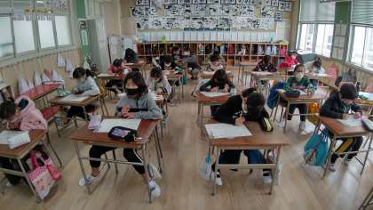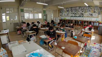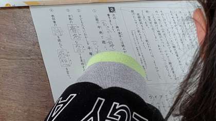 2時間目、3年生が国語の学習をしています。「総復習」のテストをしています。今日は、鈴木先生がお休みですが、みんな静かにテストをしています。