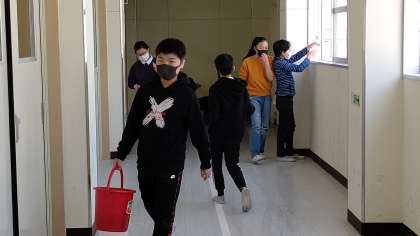 卒業前に、自分たちがお世話になった場所をきれいにしています。