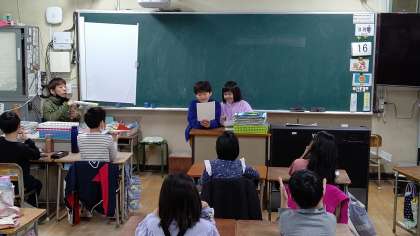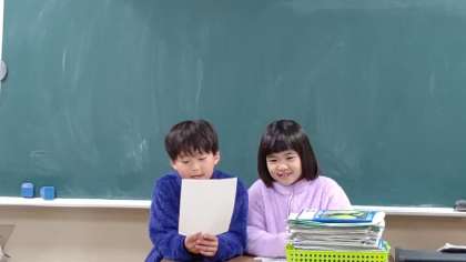 日直さんが前に出て、お話をしています。