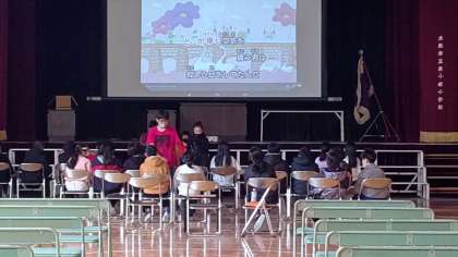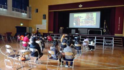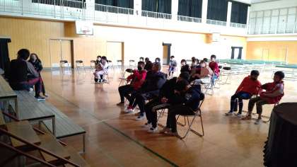 3時間目、6年生が講堂で学級レクリエーションをしています。