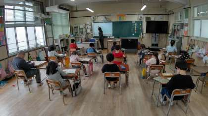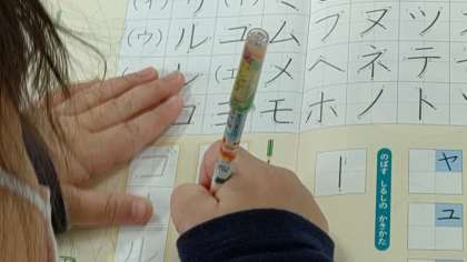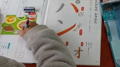 4時間目、1年生が国語の学習をしています。「1年生で習った漢字」を復習しています。「カタカナ」も練習しています。