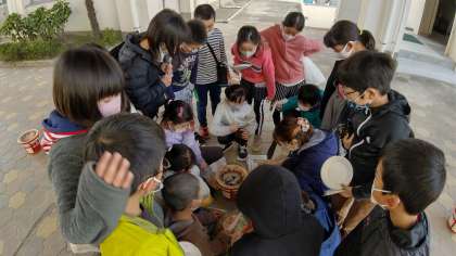 1時間目、今日は、3年生が七輪でお餅を焼いています。