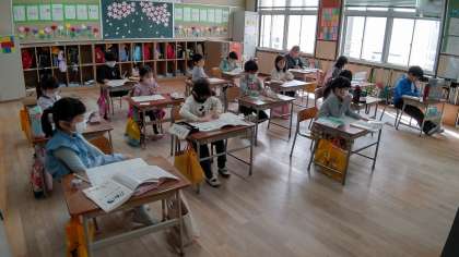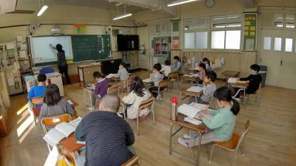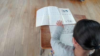 1時間目、1年生が国語の学習をしています。「カタカナ」を練習しています。