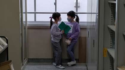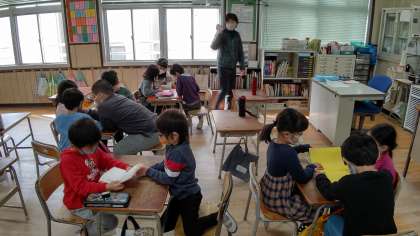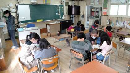 1時間目、1年生が明日のお楽しみ会の準備をしています。