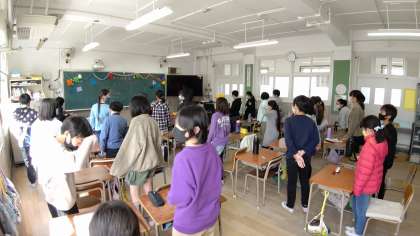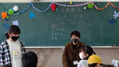 5年生ー「今井先生のお別れ会」をしています