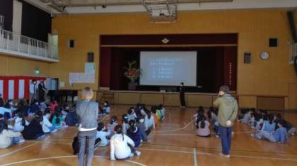 校長先生のお話、木下先生から春休み中の諸注意(交通安全について)がありました。