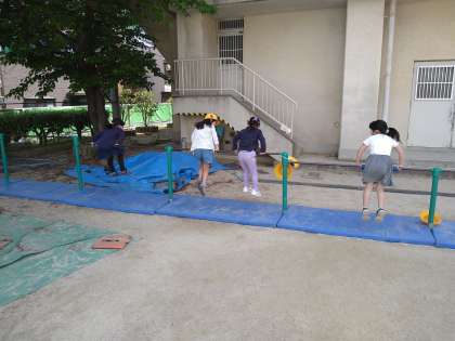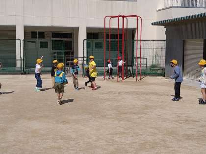 この休み時間は低学年が遊ぶ時間です。3年の子ども達がドッジボール、2年の子ども達がボール当てと鉄棒をして元気に遊んでいます。