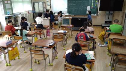 算数のひき算の学習をしています。2桁ひく2桁の計算です。繰り下がりがないので、スムーズに計算できています。