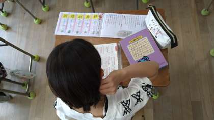 漢字ドリルを使って新出漢字の学習しています。漢字辞典を持ってきてページをめくりながら学習している児童もいます。