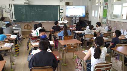大画面モニターと授業用PCを使いながら学習を進めています。