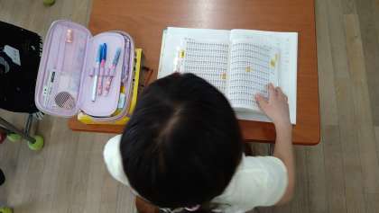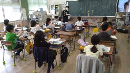 国語の学習です。漢字辞典の使い方を学習しています。部首・総画・音訓の3つの索引の仕方を漢字辞典を使い練習しています。