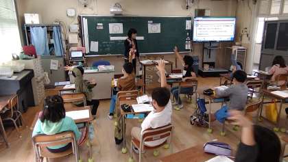 算数の学習をしています。「時こくや時間をもとめよう」をめあてとして、ひき算を使った計算で時刻を求めています。