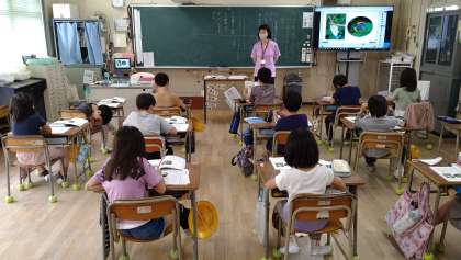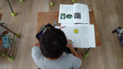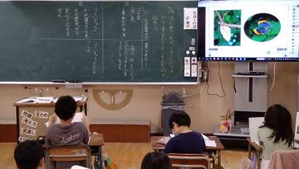 国語の学習をしています。説明文「自然のかくし絵」です。どのようにして敵から身をかくしているかを文中から読み取っています。
