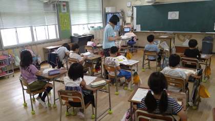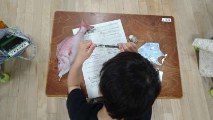 算数のテストをしています。「時間の計算と短い時間」の単元テストです。分と秒の関係や時間に関する文章題に取り組んでいます。