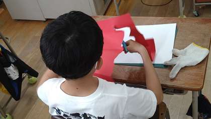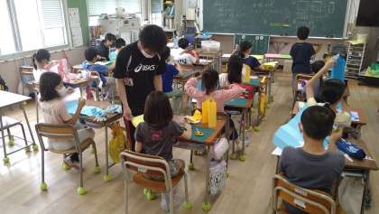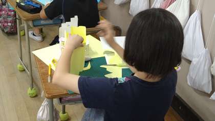 図画工作の学習をしています。紙工作です。「夢のお城へようこそ」という題材で制作しています。どんなお城ができるでしょうか?