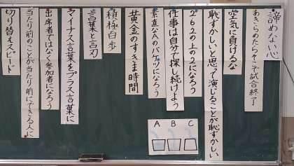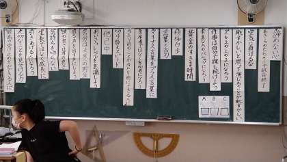 5年の時に教室に掲示していた子ども達の目指すことを書いた短冊(担任や子ども達が考えたもの)をあらためて6年でも引き続きおこなうことに決まりました。