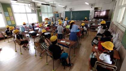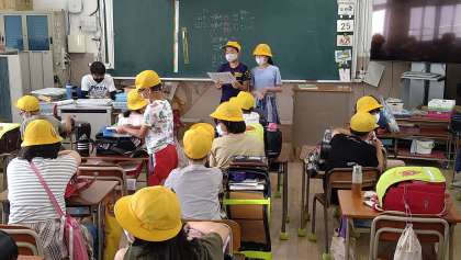 2人の日直が司会をして会を進行しています。およそ5分くらいで終わります。最後にあいさつをして帰ります。