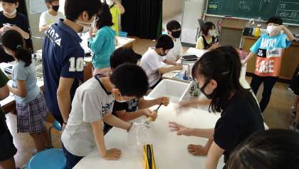 「ヒトや動物と空気」の単元を学習しています。この時間は、吐いた空気に含まれる二酸化炭素の量を気体検知管を使って調べています。