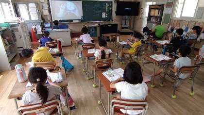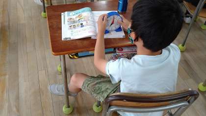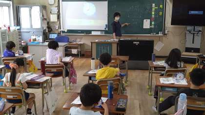 「時こくと時間」の単元を学習しています。時計の数字があらわす5分ずつの確認をしたり、1時間後の時刻を時計の教具を使って学習したりしています。