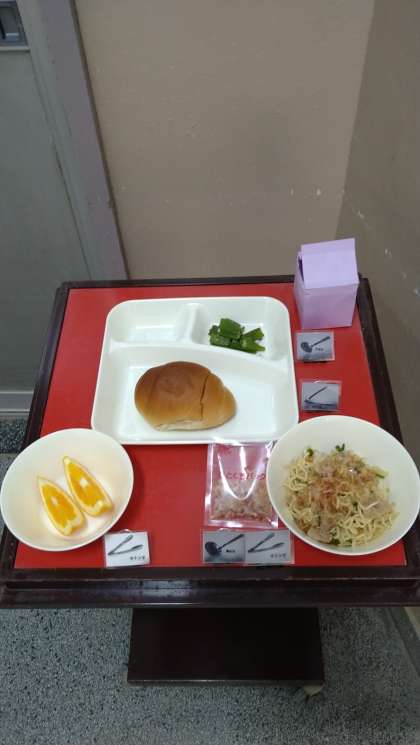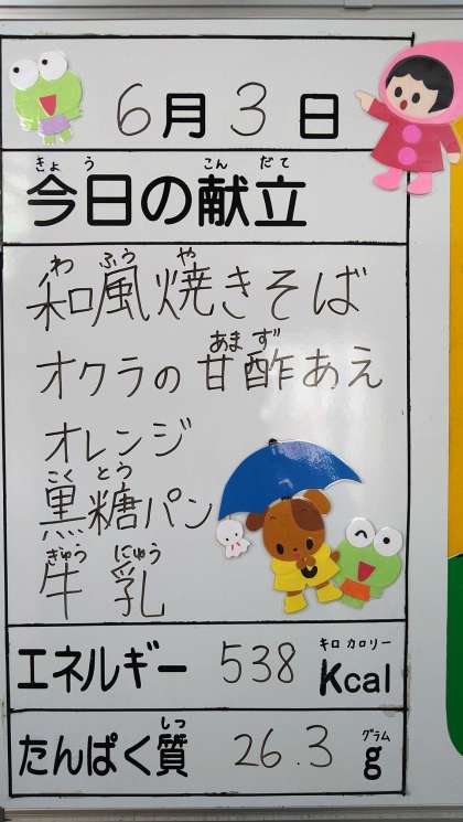 小おかずのオクラの甘酢あえはネバネバが特長です。苦手な児童もいるでしょうか?