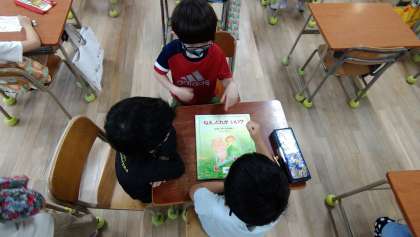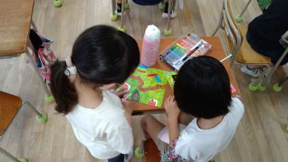 今日は生活で作っている磁石のおもちゃの台紙の色ぬりをしたり、読書をしたりしています。