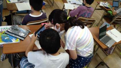 「自然災害から命とくらしを守る」という単元の中で集中豪雨について調べています。タブレット端末で調べるとたくさんの情報が手に入りますが、欲しい情報を見つけ出すことは大変ということもわかりました
