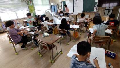 わたしのレポート」の学習をしています。原稿用紙にまとめるために、これまで学習したワークシートを使ったり、本や図鑑を見たりしてまとめる練習をしています。
