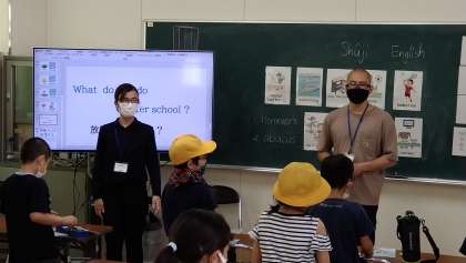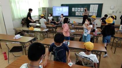 多目的に移動して学習しています。前半は、リスニングやコミュニケーションをします。後半はアクティビティをします。今日の後半のアクティビティは、アルファベットかるたをしました。