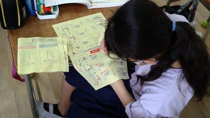 練習布を使って名前を縫ったり、ボタン付けをしています。玉留めと玉結びはかなりできるようになっています。この後は、フェルトを使って色々な縫い方を練習する予定です。