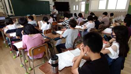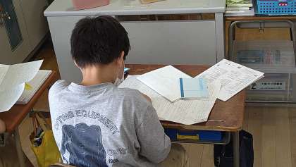 「世界で一番やかましい音」を学習しています。1場面と7場面の比較をしています。物語の題名にある「音」に関する記述の違いを比べています。