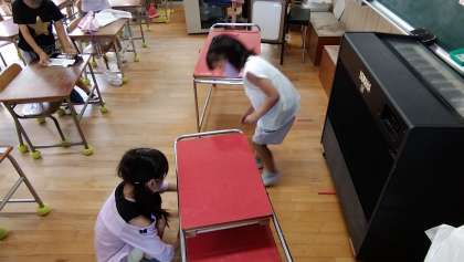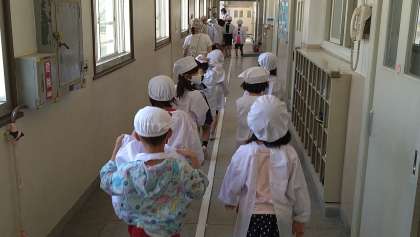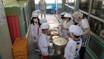 給食の準備ももう慣れたものです。週初めなので、それぞれの役割を確認して準備することができています。