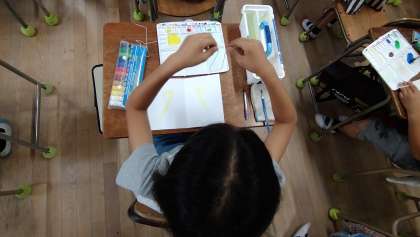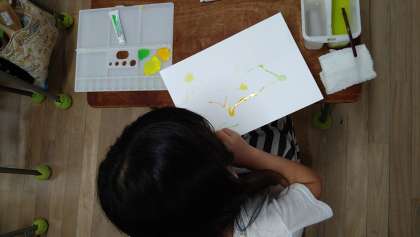 「ぐうぜんを楽しもう」の続きです。新しくストローを使った吹き流しとタコ糸を使ったステンシルという技法が増えています。前回に続き、偶然を楽しんでいます。
