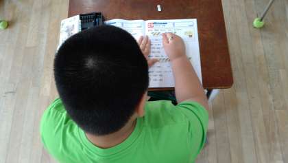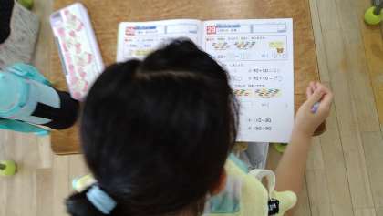 明日の算数テストに向けて、教科書の練習問題と算数ドリルに取り組んでいます。しっかり復習しています。