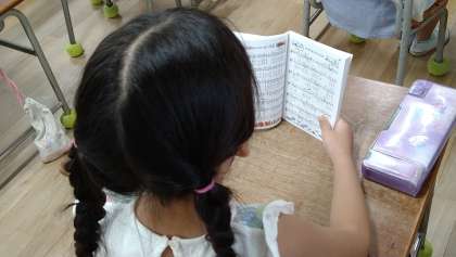 歌集に載っている「さんぽ」「南の島のハメハメハ大王」を歌っています。この歌はプール水泳の学習でもかけている曲です。