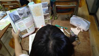 「公共しせつのあるところを調べよう」をめあてに学習しています。区役所・図書館・区民センターなど区ごとにある施設と市役所など北区にしかない施設を分けています。