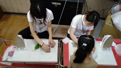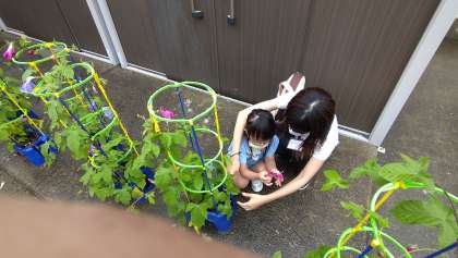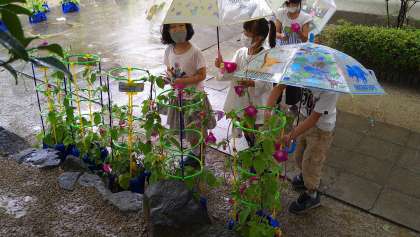 あさがおの花が満開となり、これから種ができるのを子どもたちは楽しみにしています。種は植木鉢を持ち帰ってからできると思いますので、観察・種の収穫をお願いします。花と葉を1つずつまとめ用に押し花にしています。