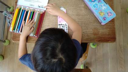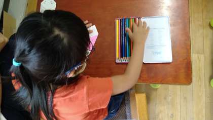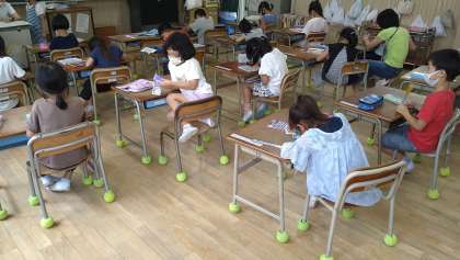 七夕にむけて願い事を手作りの織姫・彦星に書いています。願い事が叶うといいですね。