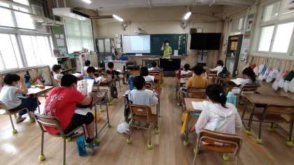 書く。」という単元を学習しています。例文のお風呂そうじの話から自分の家でのお風呂そうじの話をたくさん話しています。