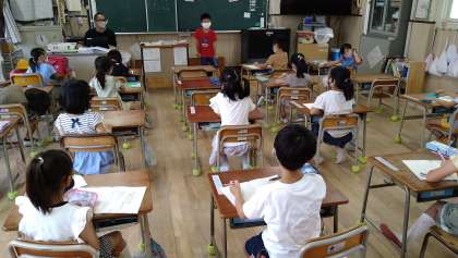 朝の会は、8時45分から始まります。日直が司会進行をします。「朝のあいさつ・出席調べ・日直クイズ」の順で進んでいきます。連絡帳も朝に書いています。